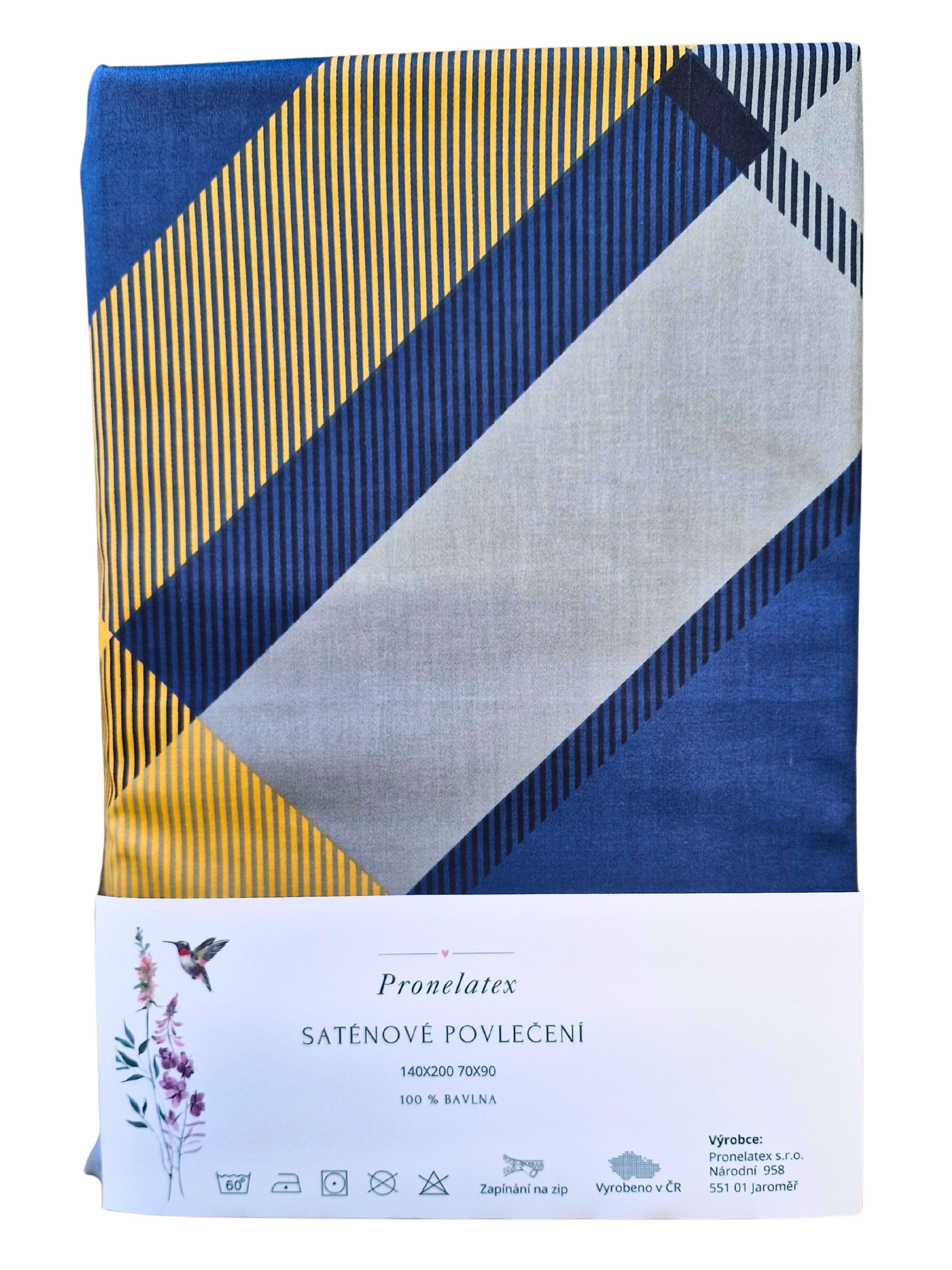 Saténové povlečení Modrozlaté káro 140X200 70X90