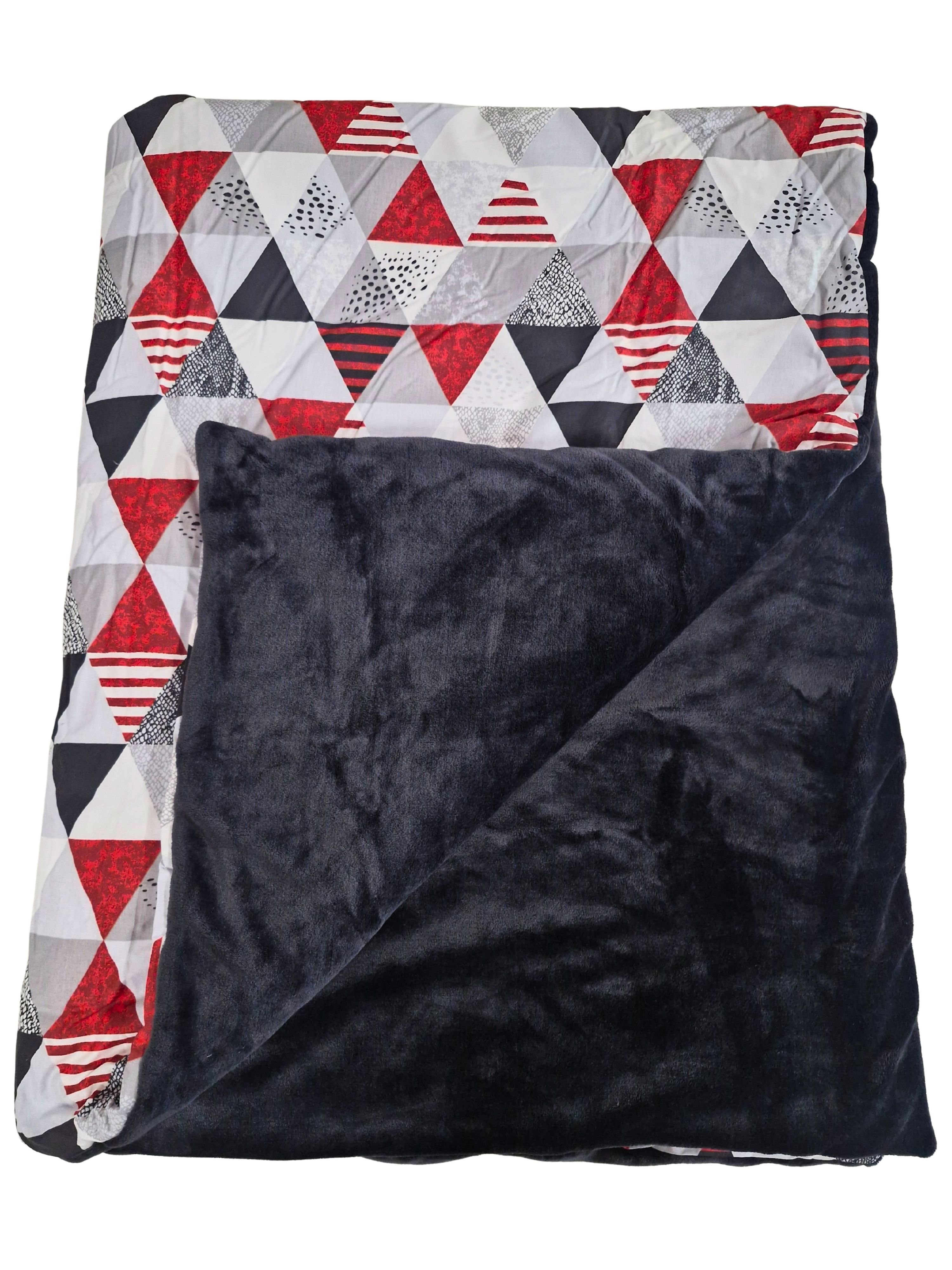 Zateplená kombinovaná deka v polštáři Červené trojúhelníky 150X200 50X60