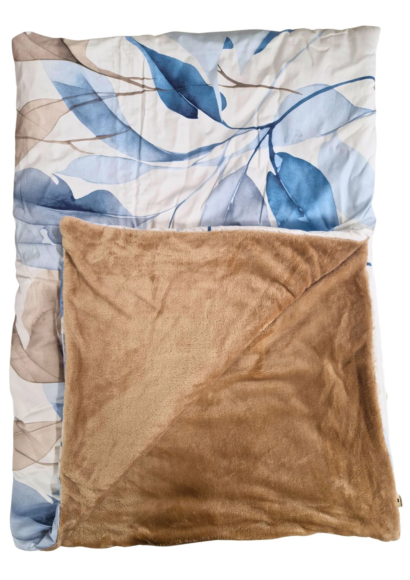 Zateplená kombinovaná deka v polštáři Hnědomodré listy 150X200 50X60